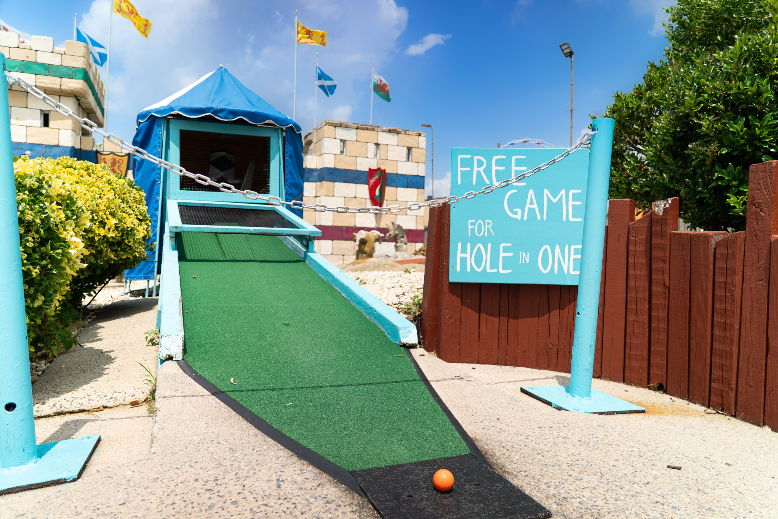 Hear ye, hear ye! Brave mini-golfers are summoned to the kingdom at Old Pro Golf’s Renaissance Castle on 28th Street in Ocean City, MD. Step back in time to a world of jousting knights, mischievous jesters, and fire-flinging trebuchets. As the castle falls under siege, you have a choice to make. Wander through the bustling faire, dodge the chaos, and enjoy the festivities, or take up your sword and join the Knights of the Round Table on a 27-hole quest of skill and courage!